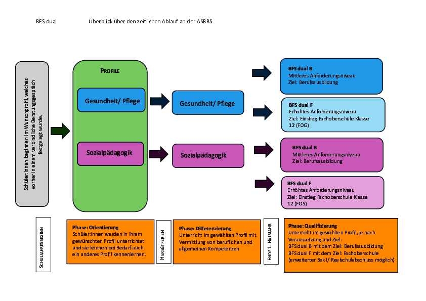 BFS dual ersetzt damit bei uns die Bildungsgänge Fachoberschulen Klasse 11 in den Bereichen Gesundheit-Pflege und Sozialpädagogik.