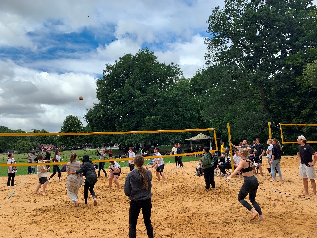 Für diejenigen, die nicht aktiv an den Partien beteiligt waren, gab es auch ein Alternativprogramm. Bei einer Runde Spikeball oder Wikinger-Schach konnten auch sie die anderen Schülerinnen und Schüler kennenlernen, sofern sie nicht gerade anfeuerten oder das Buffet plünderten :-))
